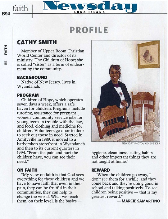Children Of Hope Mission and Cathy Smith provide an outstretched hand of hope and compassion in their community. So many lives touched, hearts mended and souls set free. Your work is not over! In many aspects, it has only just begun! Whatever direction you are sent, it will be because God said to go.